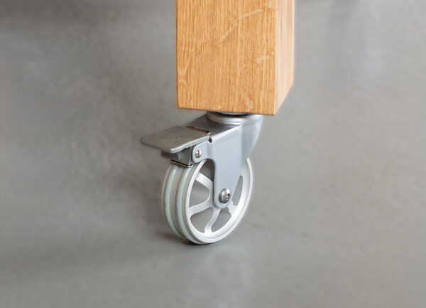 Les Billots de Sologne ®Billot de préparation en charme massif, assemblage bois de bout sur piétement équipé de roulettes.
